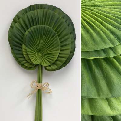 These silk fan palms are in a bundle of 12 and have a variety sizes, 4 small 14″ stems, 4 medium 16″ stems and 4 large 17″ stems.