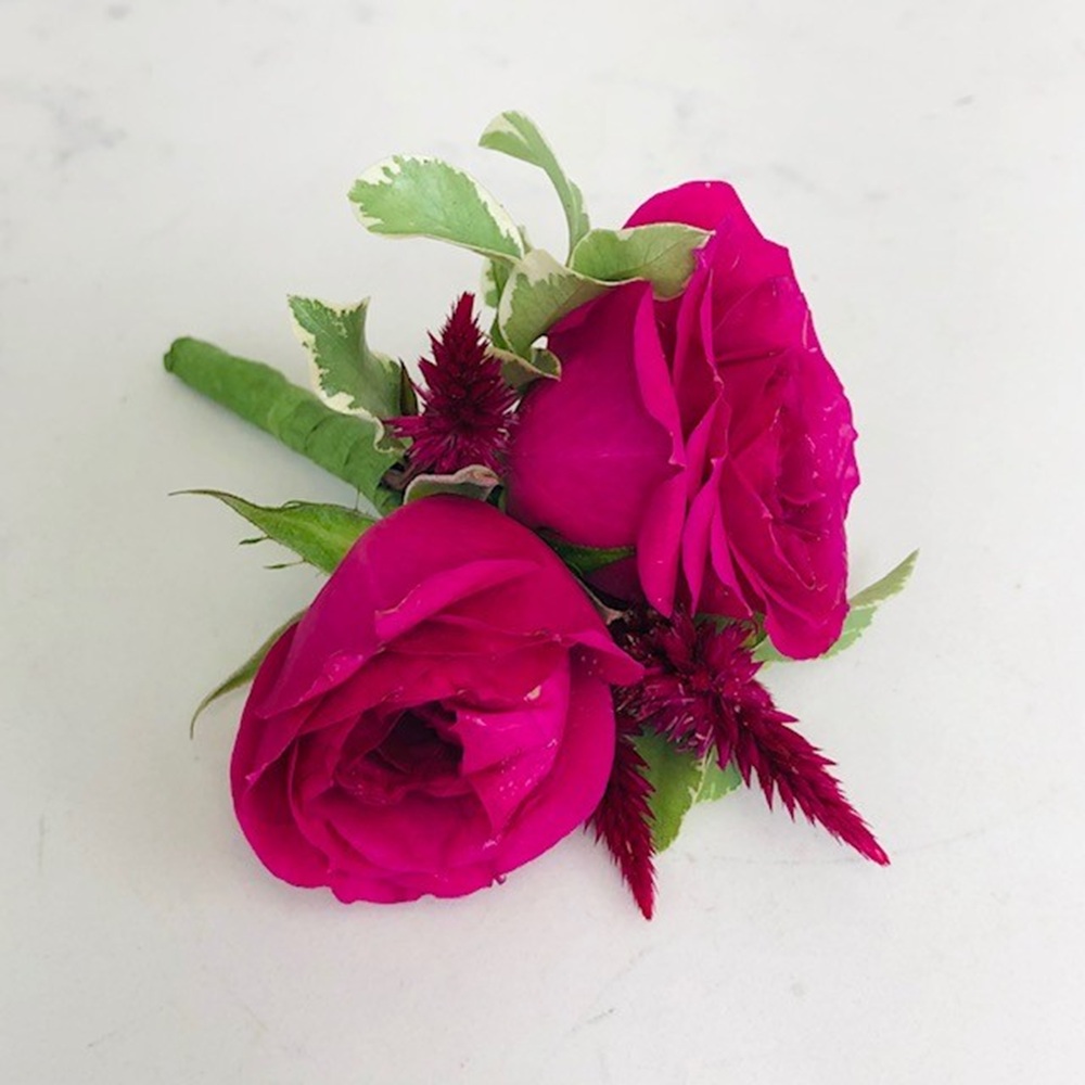 This classic boutonniere is created using spray roses with seasonal greenery. We have a variety of colors from which to choose. Please specify your primary and secondary color preferences in the space provided below.
